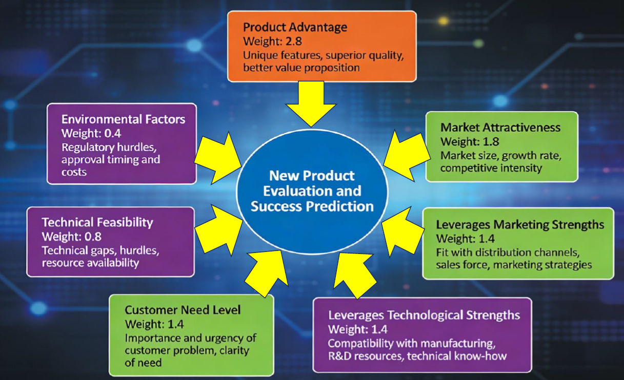 AI-PRISM was created through an innovative process: AI itself (specifically Perplexity Pro) reviewed extensive research on new product success-versus-failure factors and developed a predictive model based on what it uncovered [11]. AI analyzed dozens of research articles and existing scoring models to identify the most important factors separating winners from losers.